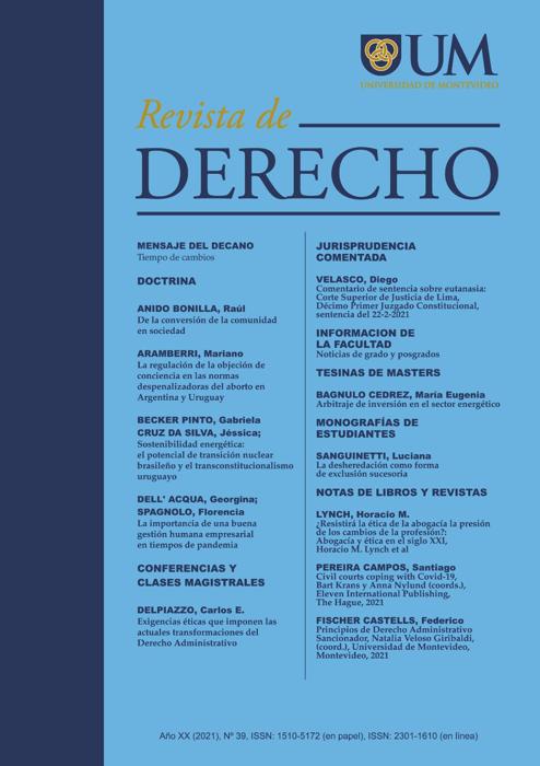 La Revista de la Facultad de Derecho de la Universidad de la República es una publicación de carácter académico, arbitrada, que tiene por objeto contribuir al desarrollo de la ciencia jurídica y las ciencias sociales, promoviendo el análisis crítico y plural sobre temas relevantes de las diferentes áreas del Derecho. La revista se compone de las siguientes secciones: doctrina (investigaciones o artículos doctrinarios), jurisprudencia o norma comentada, artículos estudiantiles, recensiones e informaciones, estas dos últimas no arbitradas.